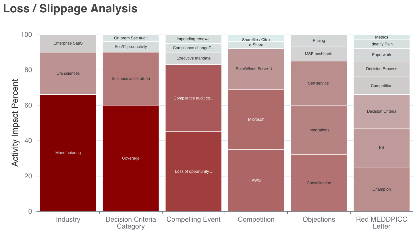 - Larger segments indicate a stronger association with losses or slippage, based on historical deal outcomes.