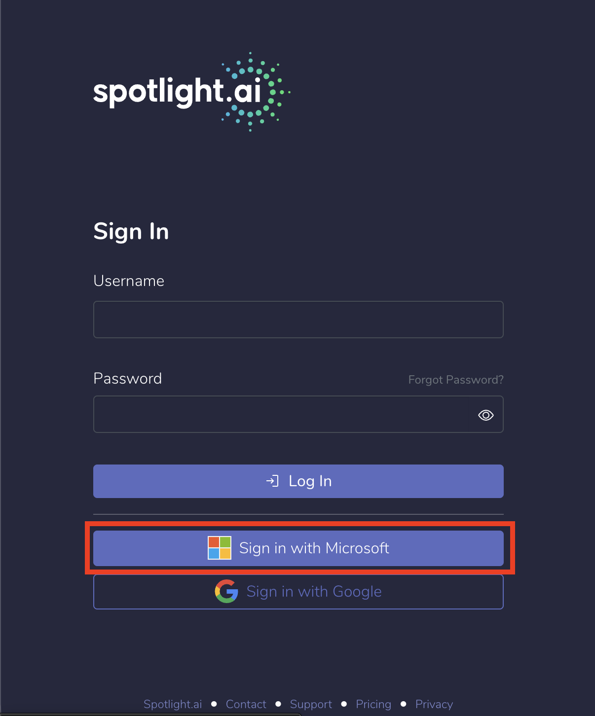 Next time you need to log into Spotlight.ai, just repeat step 2 (click the "Sign in with Microsoft" button) and you'll be automatically logged in.