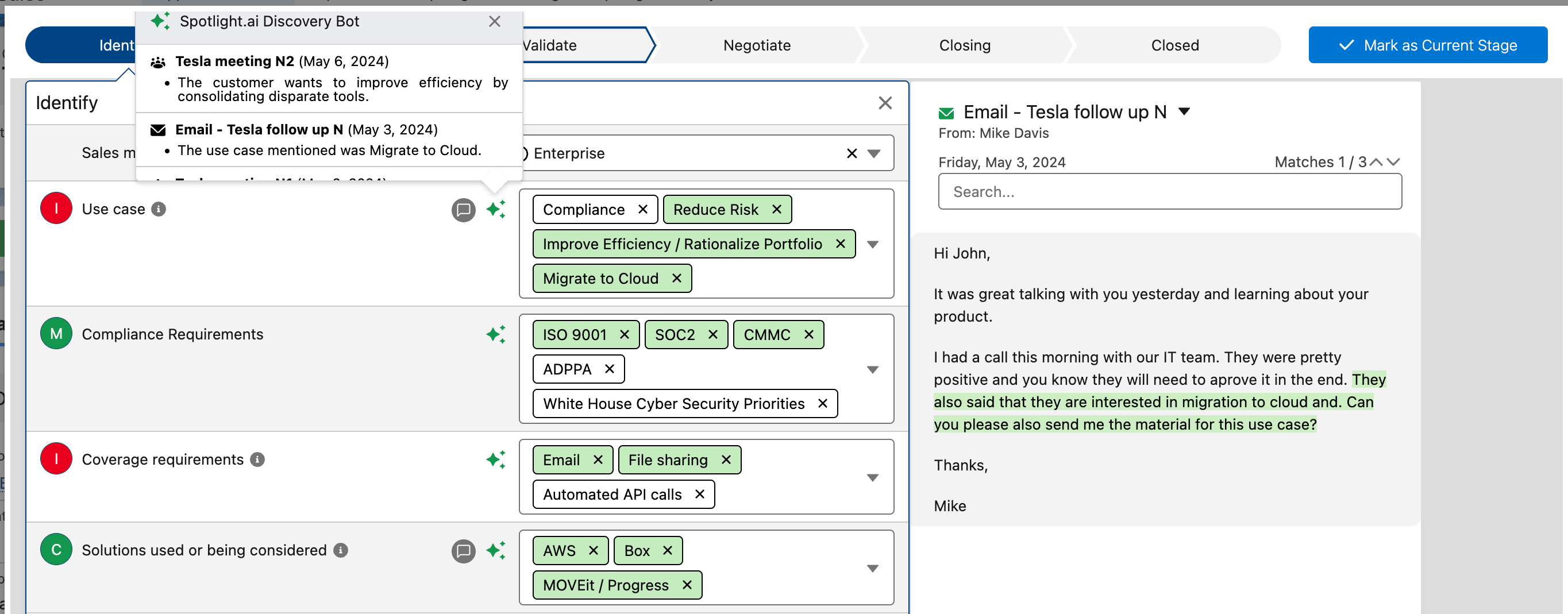 With Email Intelligence, Spotlight.ai can now understand relevant customer emails and use them to keep your opportunities accurate, complete, and up to date - without manual data entry.