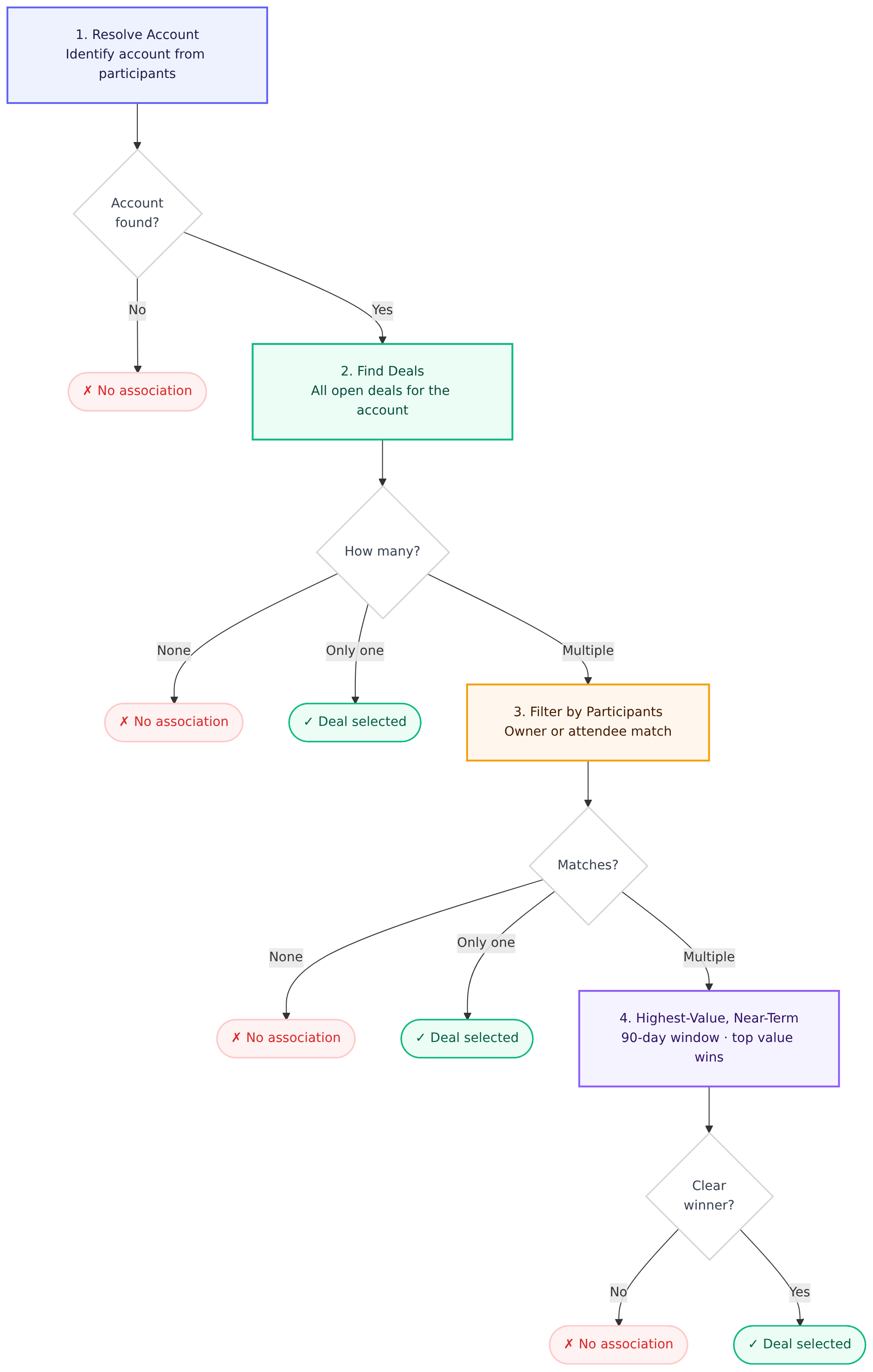 When a meeting takes place, Spotlight.ai automatically attempts to associate it with the most relevant open deal. This article explains how that selection works and what causes a meeting to have no deal associated.